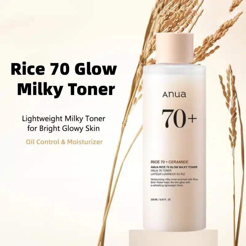 El ANUA Rice 70 Glow Skincare Set es una rutina facial coreana de hidratación intensiva compuesta por un tónico lechoso y una loción nutritiva, formulada para mejorar la luminosidad, reforzar la barrera cutánea y aportar un aspecto más saludable y uniforme a la piel.