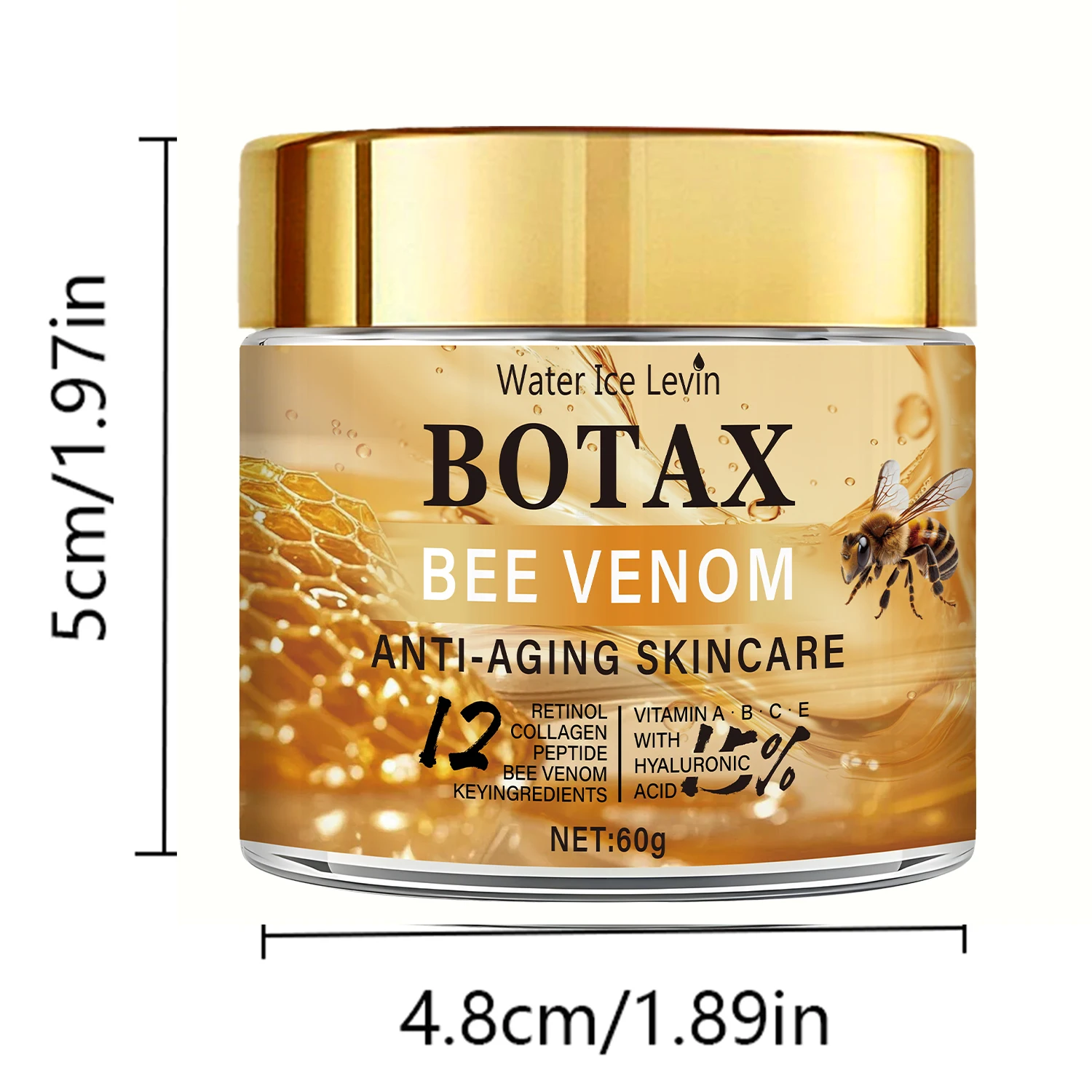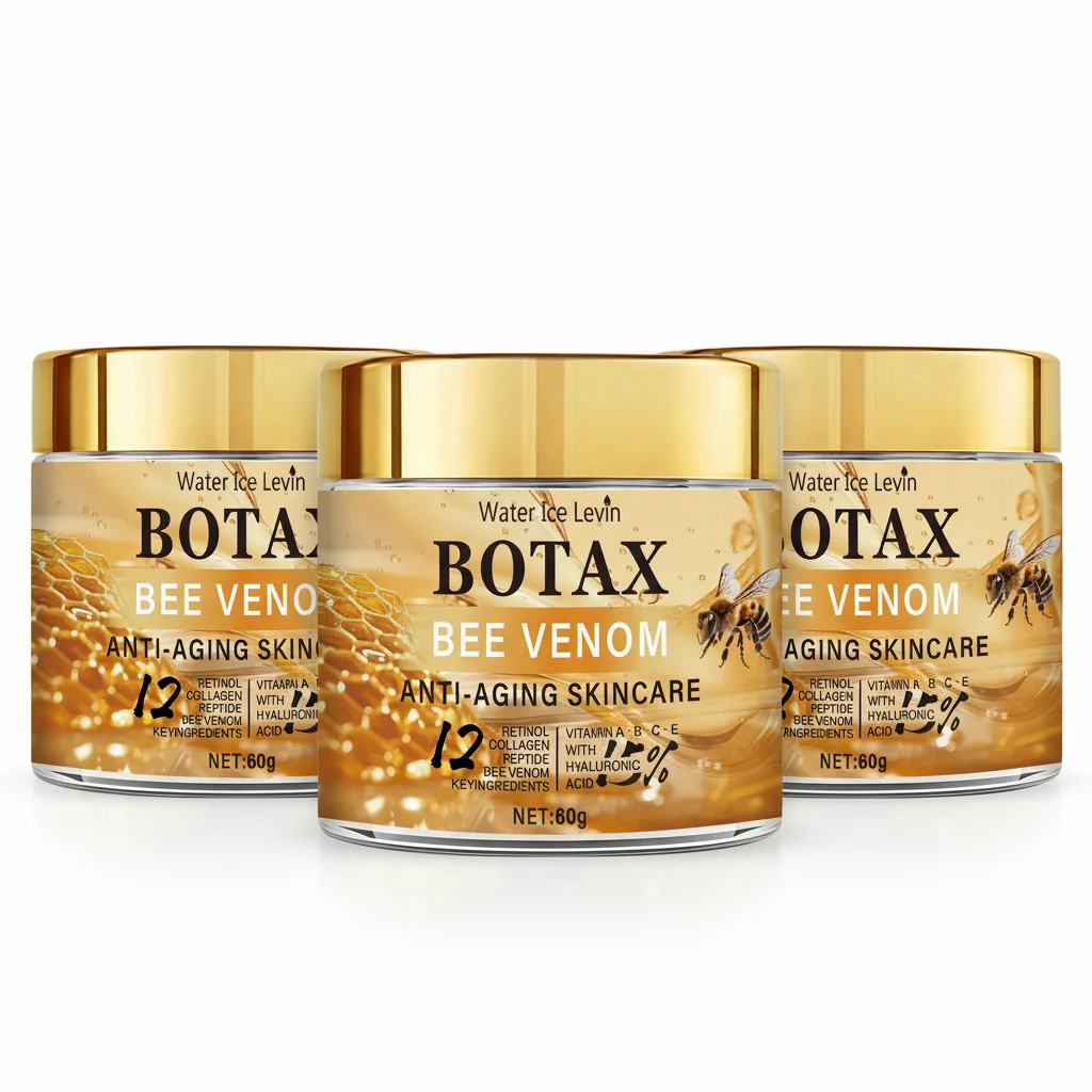 La Botax Bee Venom Cream de Water Ice Levin es una crema facial antiedad formulada para ayudar a mejorar la apariencia de arrugas profundas, falta de firmeza y signos visibles de envejecimiento. Gracias a su combinación de veneno de abeja, retinol, ácido hialurónico y colágeno, esta fórmula busca estimular la piel, favorecer la hidratación profunda y mejorar la elasticidad cutánea.
