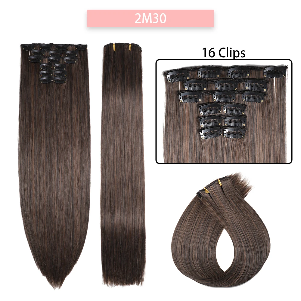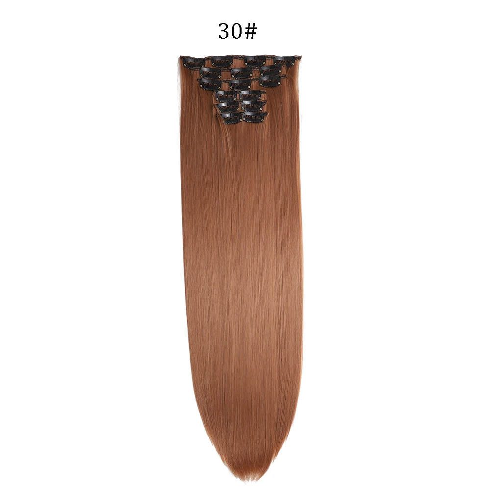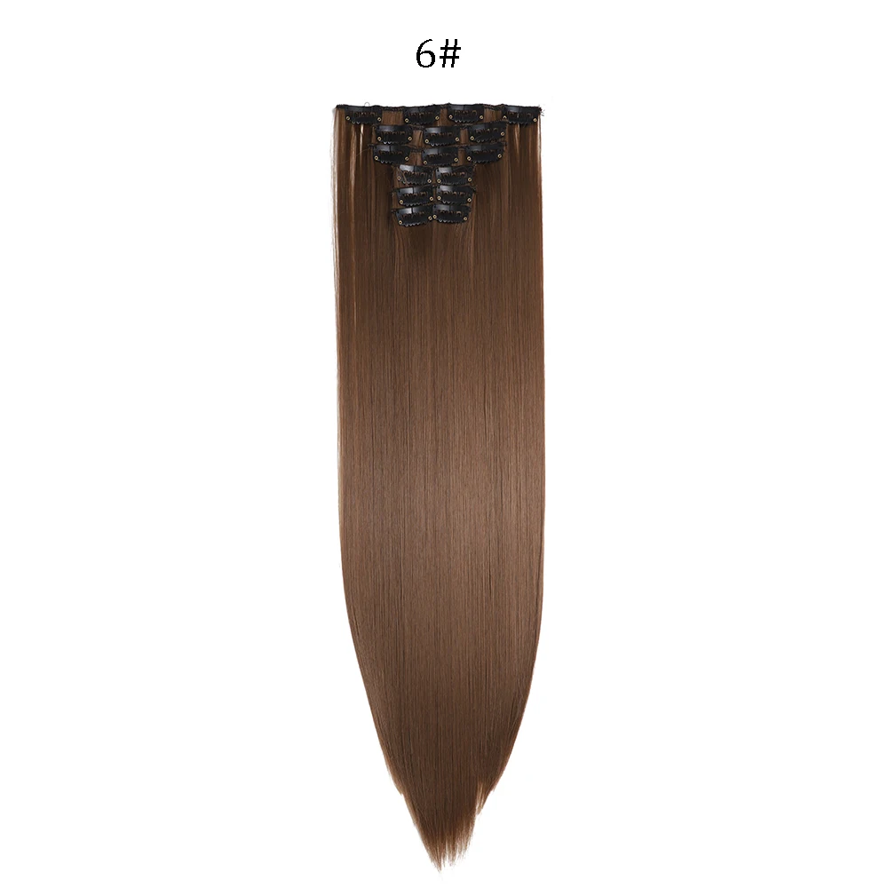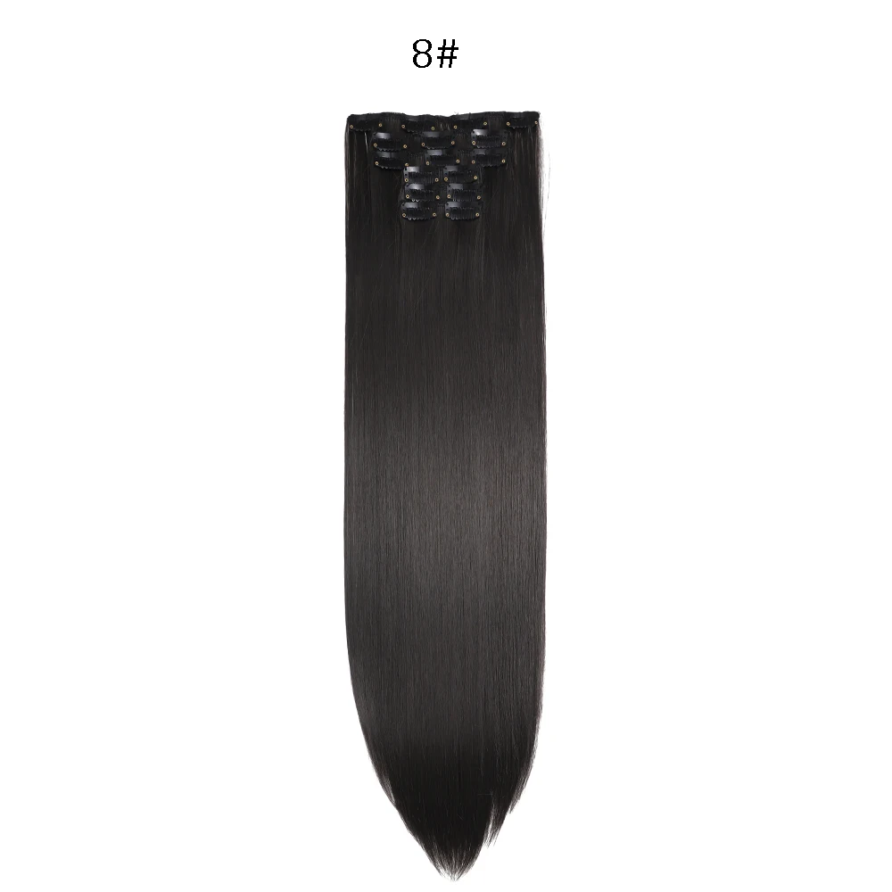 Las extensiones de cabello sintético liso de 24 pulgadas con clips (6 piezas) están diseñadas para mujeres que desean aumentar la longitud y el volumen del cabello de forma rápida, cómoda y sin dañar su cabello natural. Gracias a su sistema de clips integrados, se colocan fácilmente en pocos minutos, sin necesidad de pegamentos, calor profesional ni visitas a la peluquería.