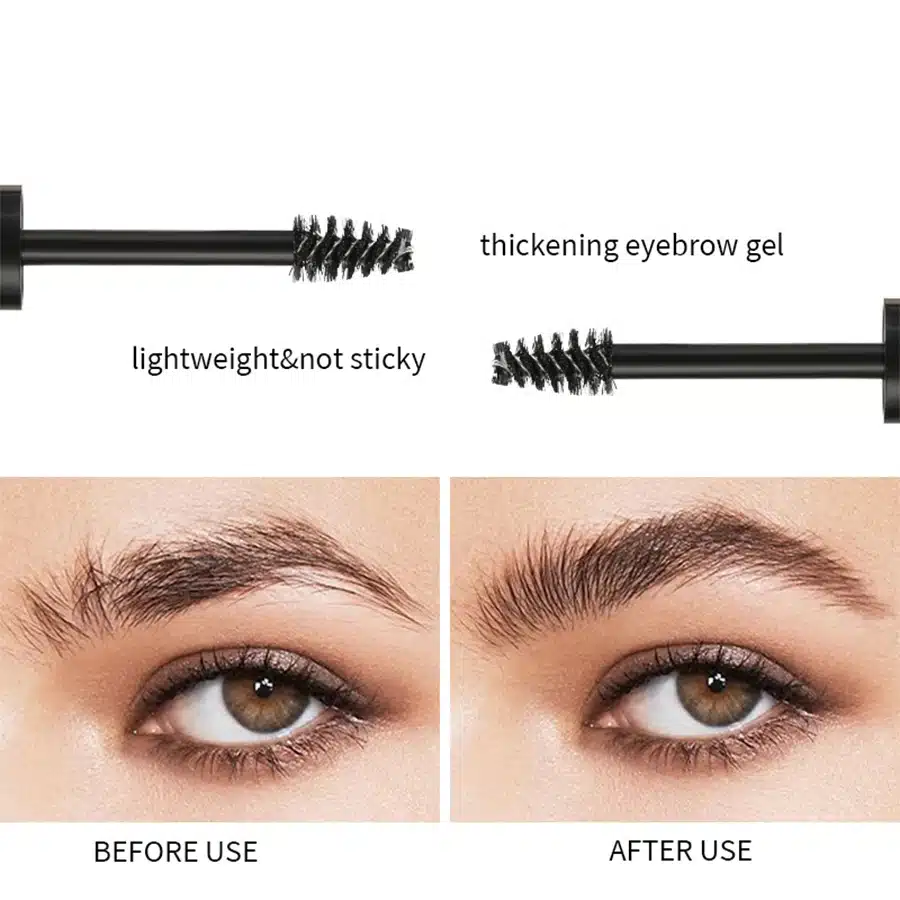 Cejas perfectamente moldeadas y naturales, aspecto limpio y definido, sin rigidez ni residuos. Resultados visibles desde la primera aplicación y durabilidad todo el día.