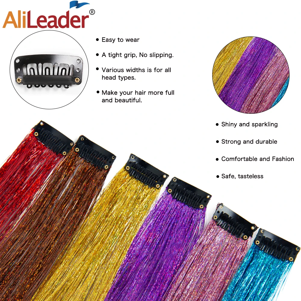 El kit de extensiones de cabello con brillo Hair Tinsel AliLeader (5 piezas) es una forma rápida y divertida de añadir destellos brillantes y coloridos a tu peinado. Estas extensiones tipo clip-in se colocan fácilmente en segundos, permitiendo transformar tu look sin necesidad de tratamientos permanentes.