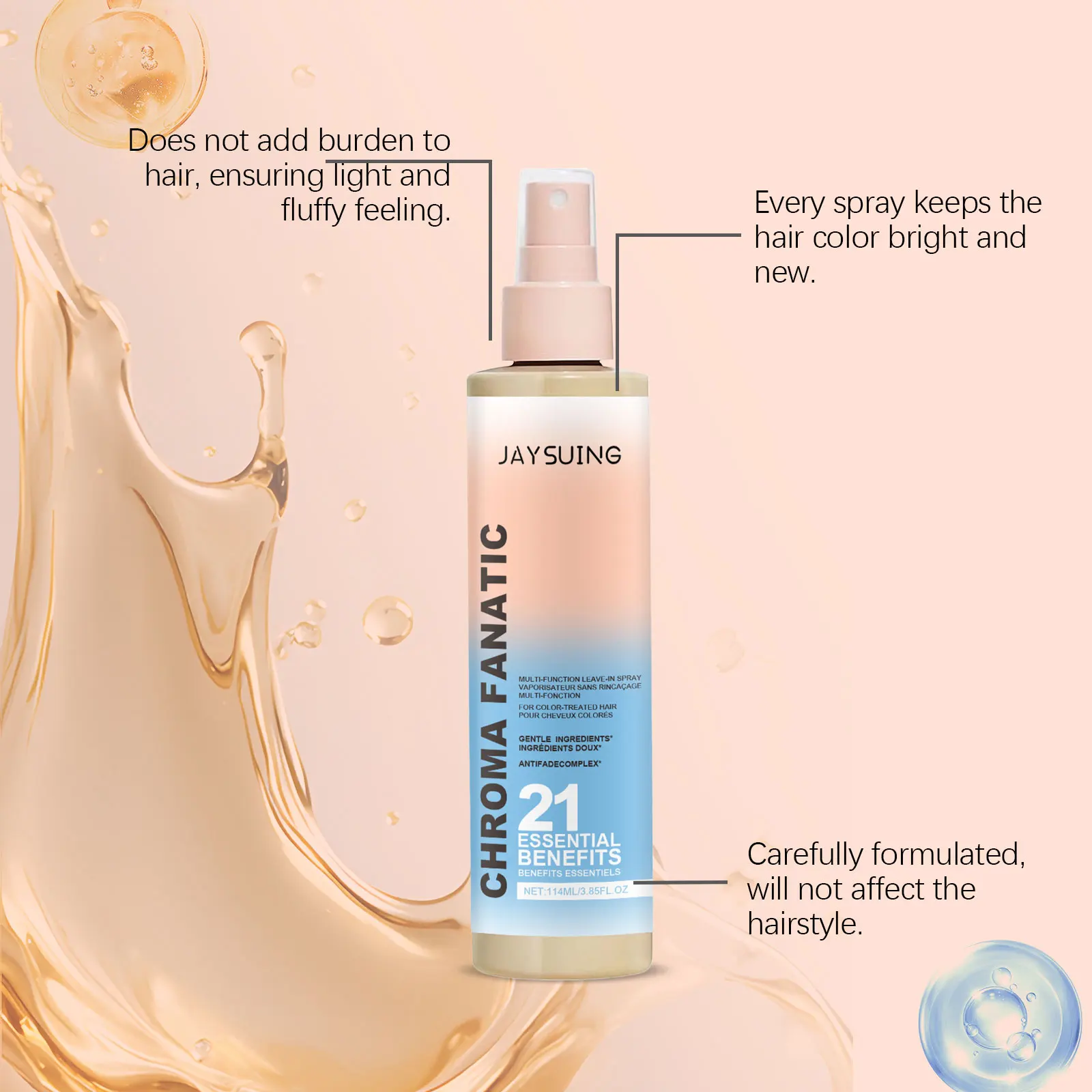 Con el Jaysuing Moisturizing Spray, cada día puedes disfrutar de un cabello más suave, brillante y sin frizz. Protege y nutre tu cabello mientras facilita el peinado. Añádelo al carrito y transforma tu rutina de cuidado capilar.