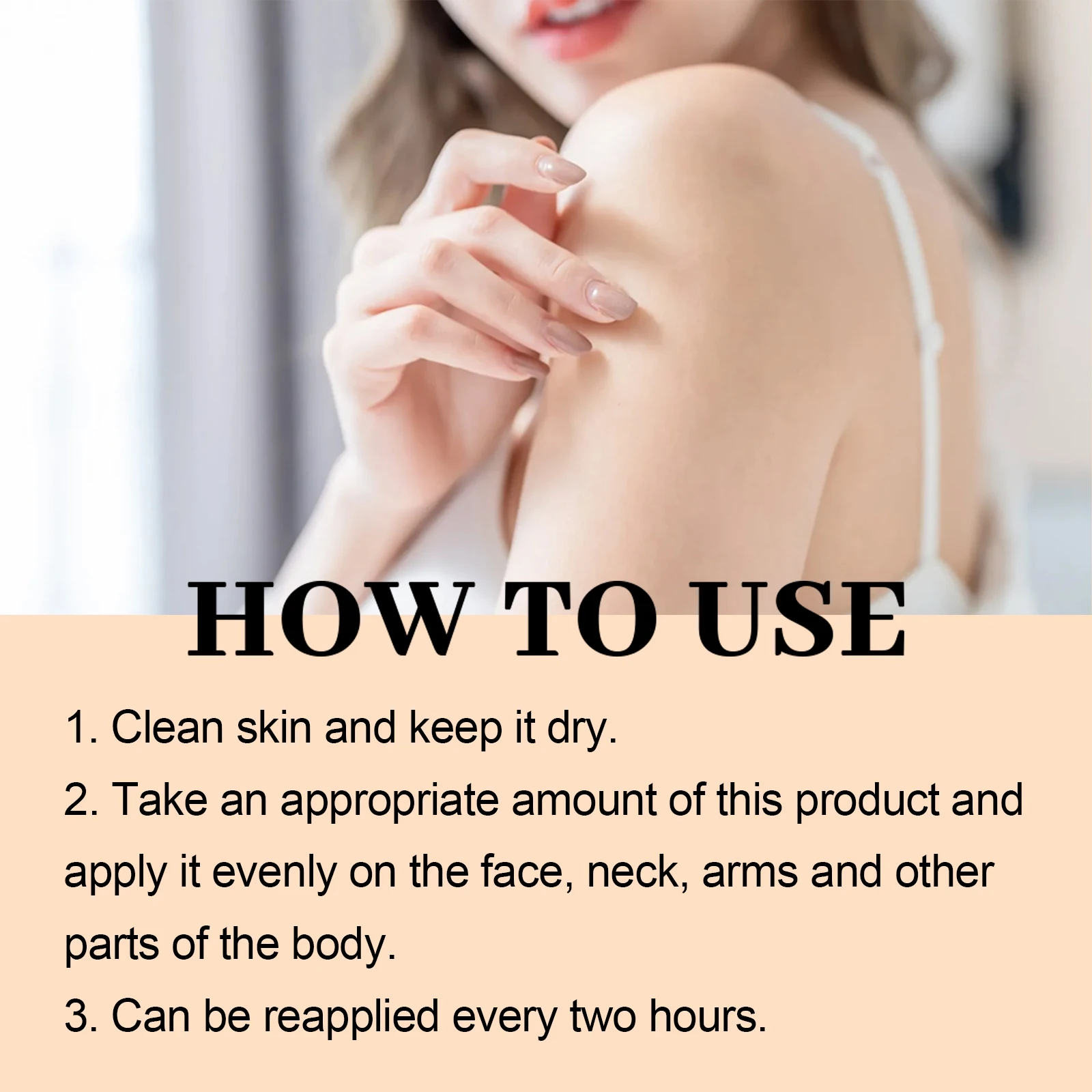 - Aplicar una cantidad generosa sobre rostro y cuerpo antes de la exposición al sol.