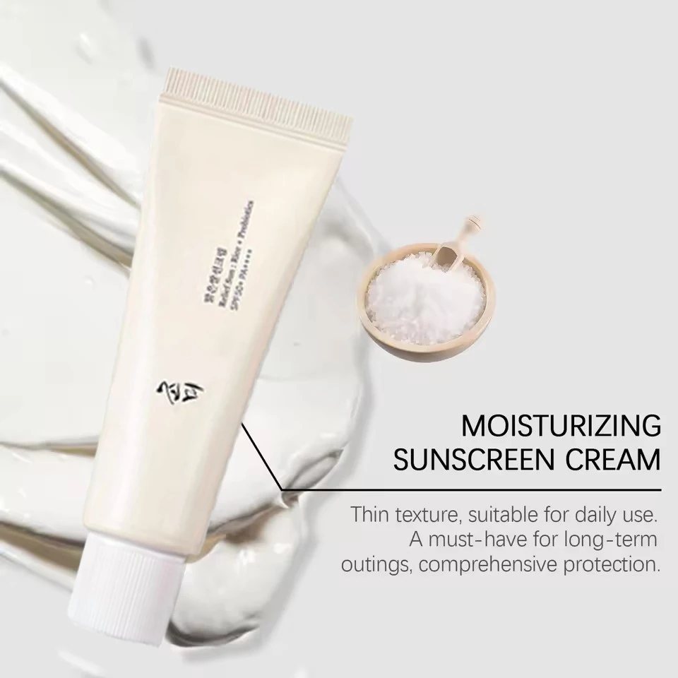 El protector solar SPF50+ PA++++ crea una barrera eficaz contra los rayos UVA y UVB, responsables del envejecimiento prematuro, manchas y pérdida de elasticidad. Su fórmula también contribuye a mantener la piel hidratada y confortable durante todo el día.