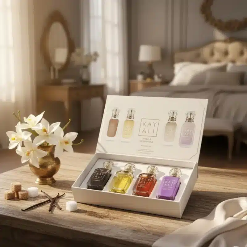 El set de perfumes KAYALI 4×10 ml es la elección perfecta para quienes buscan versatilidad, lujo y personalización en su fragancia diaria. Esta colección reúne cuatro perfumes en formato mini, cuidadosamente diseñados para ofrecer experiencias olfativas únicas que van desde lo dulce y gourmand hasta lo floral, afrutado y amaderado.