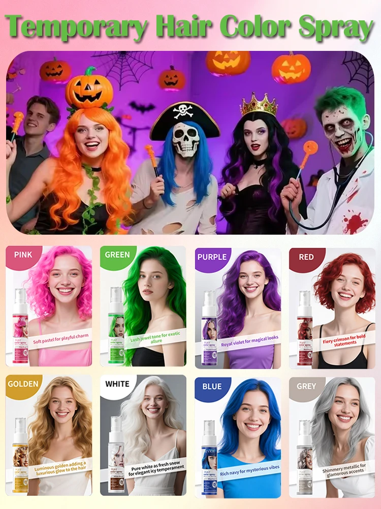 Este spray está diseñado para aplicar color temporal al cabello de forma rápida y sencilla, permitiendo crear estilos creativos sin alterar permanentemente el color natural del cabello.
