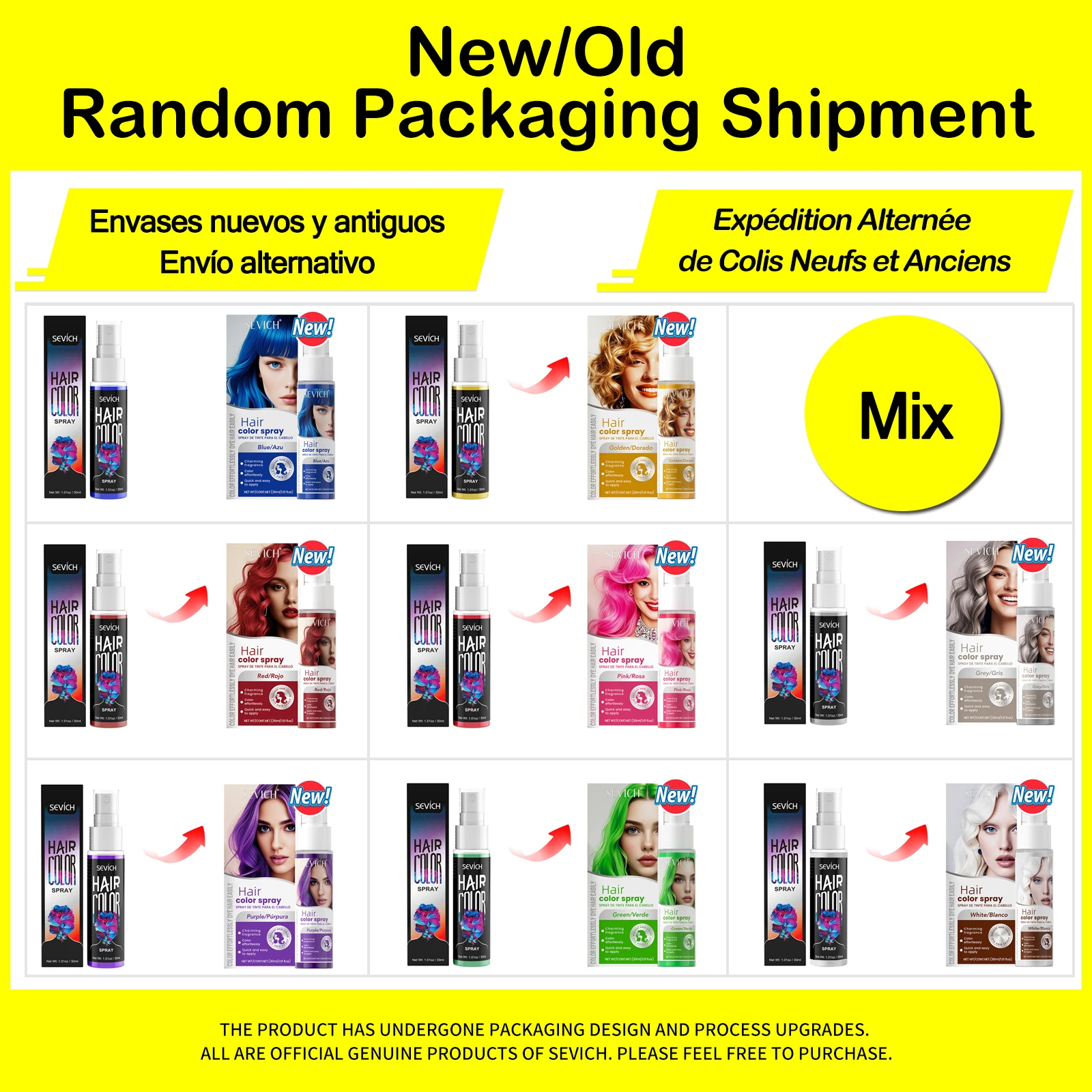 El Sevich Hair Color Spray 30 ml es un spray de color temporal para el cabello que permite cambiar tu look al instante sin necesidad de tintes permanentes. Ideal para fiestas, eventos, disfraces o estilos creativos, aporta un color vibrante que se elimina fácilmente con el lavado.